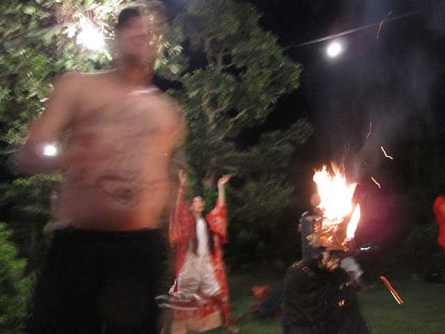 後ろの茂みから赤い着物を纏ってゆっくりと現れて踊りだした姫ちゃんはその場に絶妙のスパイスを加えていて美しいセッションが始まっていた。